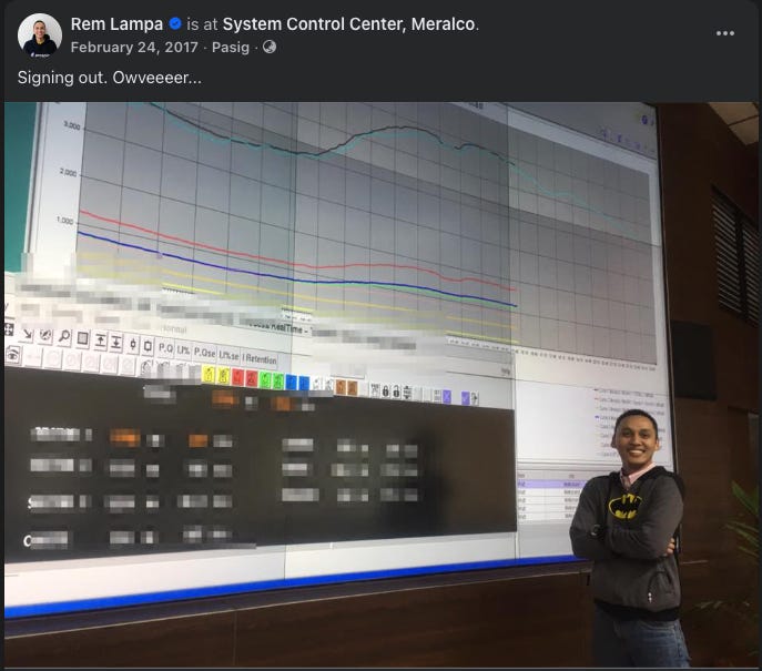 We were not SIMPLY Meralco employees either, as we were assigned in departments that worked directly on energy sourcing and dispatch, and the operation and monitoring of the WHOLE energy distribution system. I won't go too much into details, but we had direct knowledge of where energy was being sourced, how it was transmitted from the power plants to the Meralco franchise up to the substations and, finally, to the distribution transformers perched on poles that serve your areas. We had direct contact with the power generation companies Meralco had contracts with, WESM, and of course, NGCP. As in one phone call away. 🤣 With a single click of a mouse, we were capable of cutting off and restoring power in any area of the franchise, from streets to blocks to barangays to whole cities. We were also in charge of dispatching and coordinating field crews during maintenance and emergency power restoration efforts. Looking back, it was a pretty cool gig, salary notwithstanding.